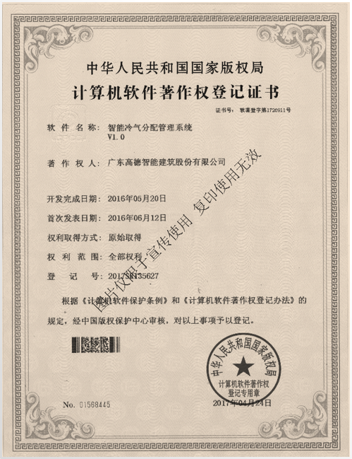 多功能智能控制配電柜證書